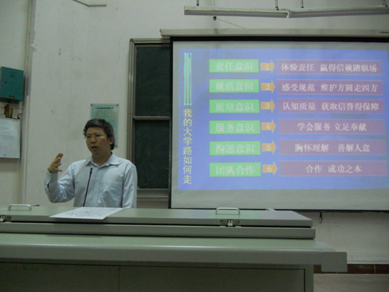 邱处长从老员工角色定位讲起,巧妙地运用人椅游戏向新生们展示了协调合作及团队精神的重要性,广大同学踊跃参与,讲座的气氛逐渐活跃起来。邱处长指出新生们应从责任意识、规范意识、质量意识、服务意识、沟通意识及团队合作方面着手培养良好的职业意识,并强调老员工应从会做人、会做事、会学习、提高学习办事效率、与人为善、善于沟通等几方面努力完善自己,为未来发展打下良好基础。
