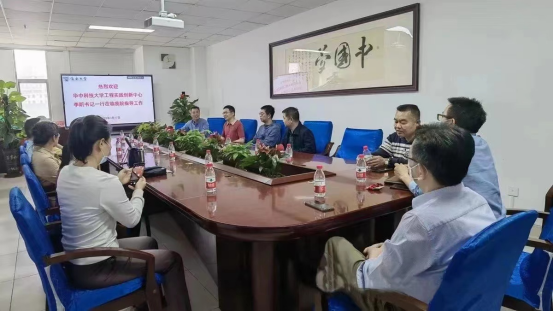 2023年3月17日下午,华中科技大学工程实践创新中心直属党支部李昕书记、启明公司双创办公室詹必胜主任一行4人莅临公司参观交流,座谈会在研发楼417会议室举行。太阳成tyc122cc集团实验室主任梁栋及全体实验人员参加,陈振斌副经理主持会议。