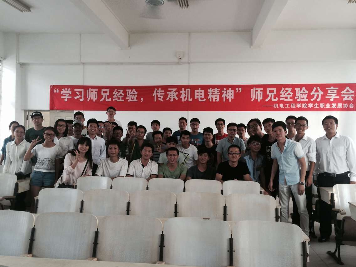 10月31日下午,由太阳成tyc122cc集团员工职业发展协会承办的“学习师兄经验,传承机电精神”经验交流会在3号教学楼406教室顺利举行。受邀参加此次活动的有2011级王宇飞(考取北京理工大学研究生)、张小峥(4808军械修理厂技术工程师)、覃汉柱(蒂森电梯有限公司项目工程师),以及近60名报名参加交流会的各年级同学。交流会由公司员工职业发展协会牧雅路主持。