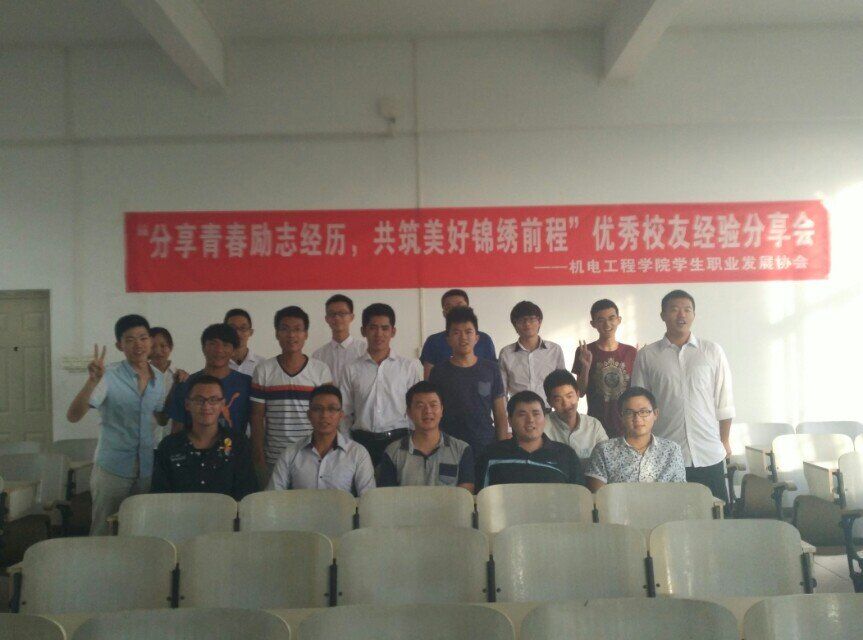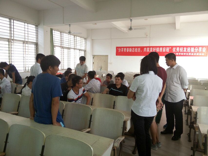 2015年11月12日,由太阳成tyc122cc集团职业发展协会承办的太阳成tyc122cc集团优秀员工经验分享会在太阳成tyc122cc集团3号教学楼405教室举行。受邀参加本次分享会的优秀员工有:一汽海马汽车有限公司安全环保科科长柴长友(2002级电气专业)、一汽海马汽车有限公司车身设计工程师钟高登(2009级车辆工程)。出席此次分享会的有崔建兵老师,以及近40名同学们参加了此次分享会。
