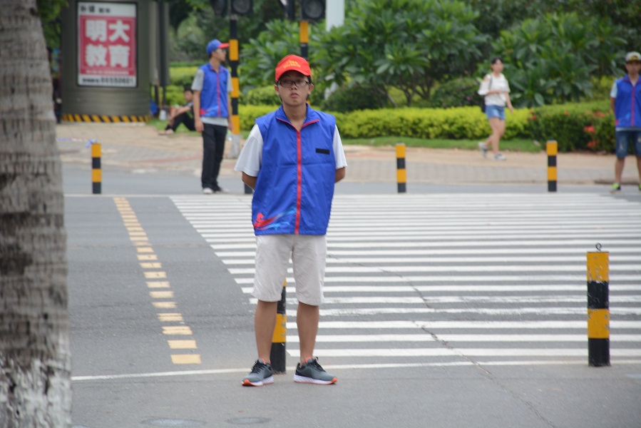 在交警大队的安排下,公司各志愿者于一点四十五分在所分配的志愿路段准备就绪。志愿者们热情高涨,一如这火辣的骄阳,他们有条不紊地工作,尽职尽责,防止不知情的市民横穿马路而对赛事干扰。头戴小红帽,身着蓝色马甲的志愿者们,成为了赛场上一道亮丽的风景。烈日下近两个小时的等待后,自行车赛队终于抵达公司的志愿路段。志愿者们背对赛道,依旧严阵以待,他们坚守在自己的岗位上,等待所有车队的通过。