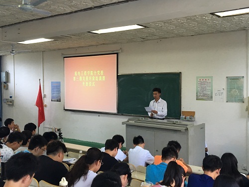 仪式在庄严的国歌中拉开帷幕。学工办主任崔建兵老师发言,他希望本期学员能够端正入党动机,积极向党靠拢,提高自身的党性修养,树立远大理想做一名合格的共产主义接班人。