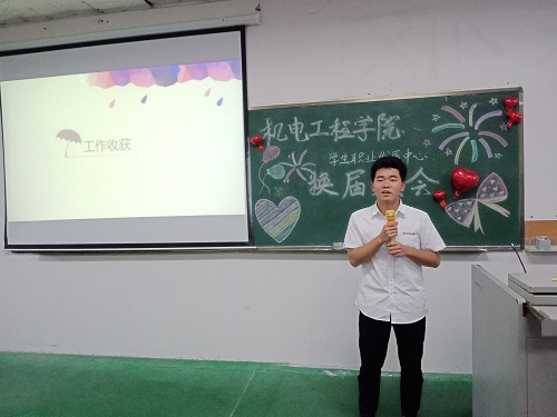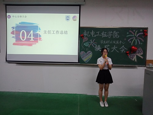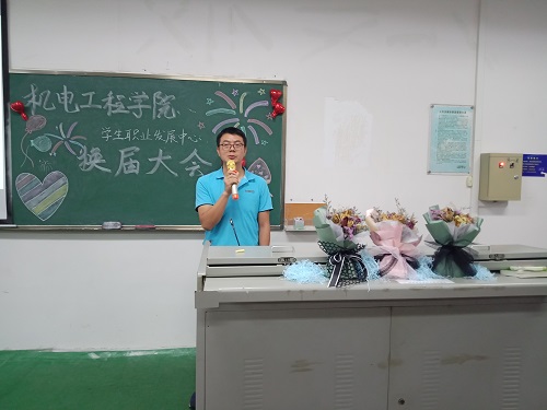 六月淅沥,盛夏缤纷。2019年6月16日下午两点半,机电员工职业发展中心全体大会暨换届大会在1-202教室圆满举行。学工办主任崔建兵老师出席,中心全体员工干部参加。对外关系部李晓雨主持本次大会。