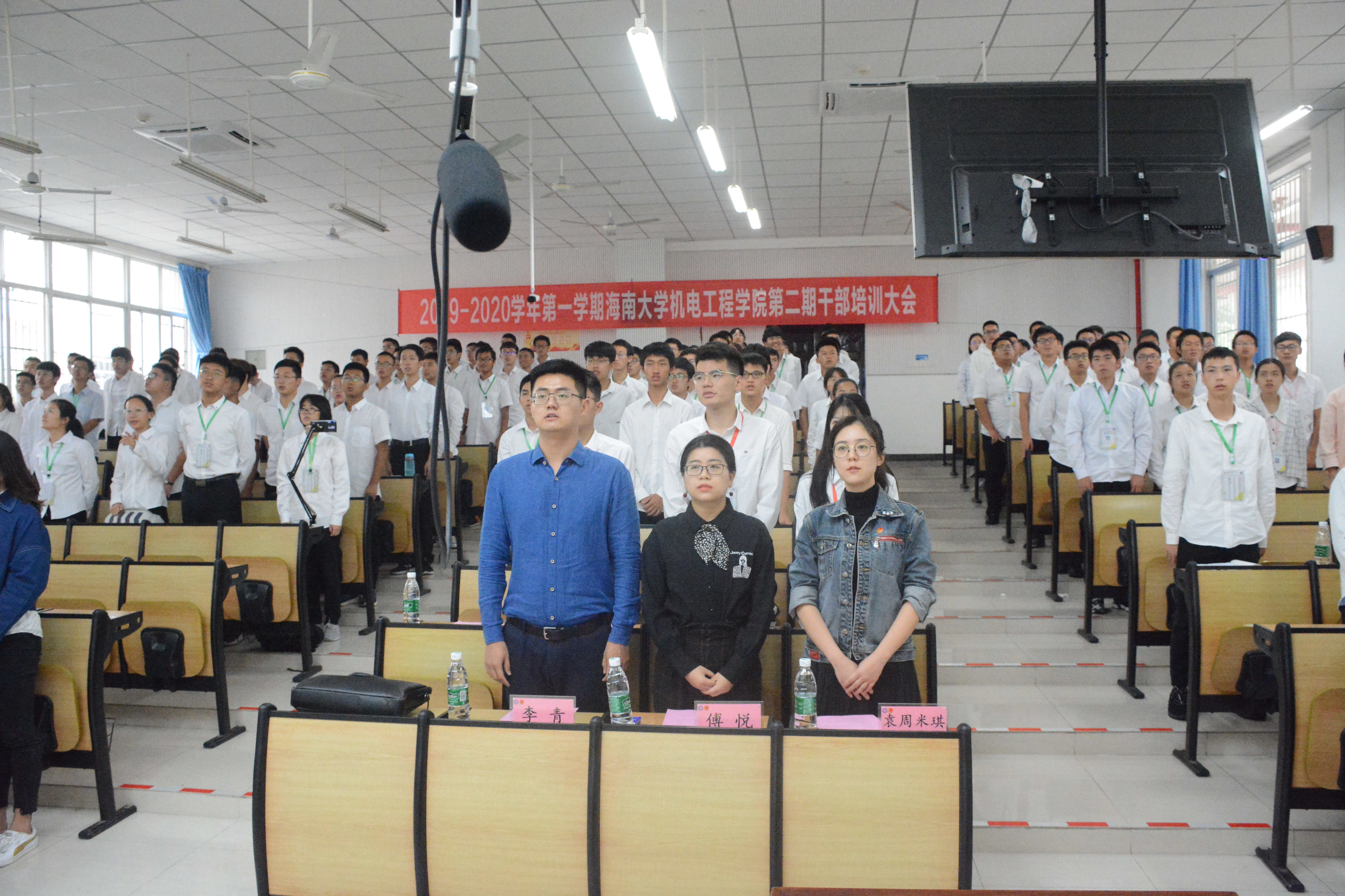 大会的第三项由李青老师进行授课,李青老师同样是在开始的阶段提出问题,引导干部们进行思考,随后李青老师从“强三性(政治性,先进性,群众性),去四化(机关化,贵族化,娱乐化,行政化)”对问题进行剖析。并且提倡干部们可以用娱乐的手段来吸引同学们积极参与,但最终的目的是要引导同学们提升自己的思想,而不能仅仅止于娱乐。并且呼吁全体干部:不忘初心,为机电公司的发展尽心尽力。