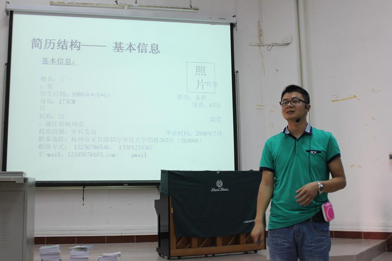 为保证“就业有位来”,大力提升员工社会竞争力,太阳成tyc122cc集团于2015年5月4日下午4时40分在2教108室举办以“简历制作:打造个人职业品牌”为主题的简历撰写指导讲座,讲座由崔建兵老师主讲。