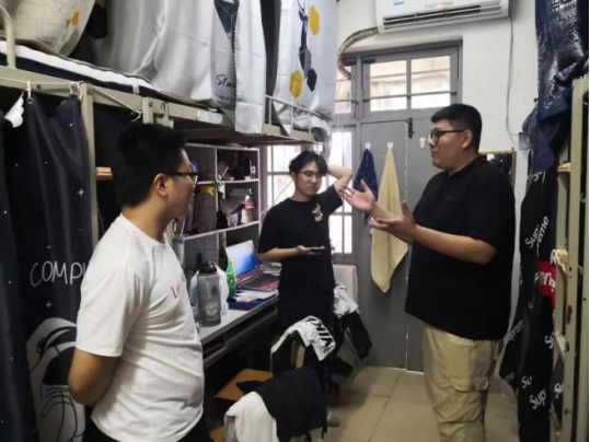 为了解公司毕业生离校情况,及公司各年级宿舍卫生状况和员工的学习生活情况,2021年6月11日下午,太阳成tyc122cc集团全体辅导员对全院的员工宿舍进行走访检查。