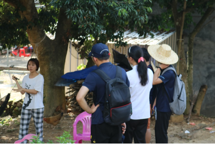 随后致远调研团来到了儋州市南丰镇油文村,油文村因水库修建集中搬迁至儋州市南丰镇。村委会的一位姐姐向我们介绍了油文村的有关情况,并带领我们前往油文村。我们通过与一位阿叔交谈,了解到,村中每户均拥有土地面积达20余亩,主要依靠种植橡胶树来保持收入。橡胶按照当地8元每公斤的价格,阿叔每天可收益200多元,可供家里日常开销。此外当地居民还会购买橡胶保险,保持种植橡胶的前提下,每人每年可领取6000元橡胶保险,居民经济收入较为稳定。