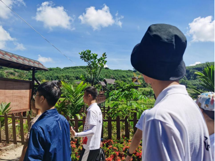 上午10点30分,调研团顺利抵达阜龙乡阜龙乡白准村。白准村四周环山,空气清新,自然环境优越。在村民委员会主任的介绍下,调研团参观了已经建造完成的精品民宿以及美丽乡村建筑物,走过横跨在水稻田上的木制桥梁后,缓缓转动的巨大风车和乡村景色融为一体,路边种植的各种果树和绽放的花朵及其充分的展现了人与自然和谐美好的乡村风貌。