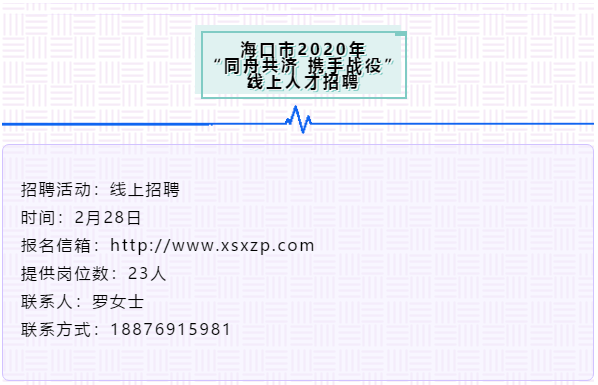 海口市2020年“同舟共济 携手战役”线上人才招聘