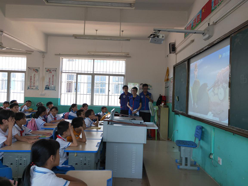 支部成员们在下午14:30从太阳成tyc122cc集团北门乘坐大巴出发,前往大林小学。海南的四月,虽然天气异常炎热,党员们却热情不减。在课堂上,支部成员们首先通过有奖知识竞答的方式,生动有趣地为同学们介绍了什么是红色精神、五四爱国运动、红色经典与革命精神,随后播放了相关的视频引导同学们一起探讨学习。支部成员们共同表演了以“五四爱国运动”为主题的话剧,再一次带领大家体会这场具有里程碑意义的革命运动中,爱国青年们勇于奉献,不怕流血牺牲的伟大精神!
