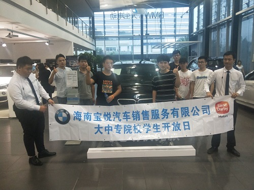 海南宝悦陈经理对我们的到来表示热烈的欢迎,向我们介绍了关于我们、公司的创建和成长发展史;培训师钟老师带领同学们进入企业培训室,介绍了各个部门的工作职责,并由公司销售代表追根溯源,为我们讲解了BWM的由来,阐释十分形象,通俗易懂,答疑环节气氛活跃,同学们收获颇丰。随后同学们参观了冲压车间、车身焊接车间、新能源车间、总装车间等主要生产流水线,看到宽敞的厂房,现代化的设备,自动化的操作,高科技的运用,由零部件到组装成车的过程。同时,流水线上工人们紧张有序和熟练的操控技术,高涨的工作热情,紧密配合的合作精神,让同学们感到新奇和震撼。