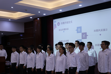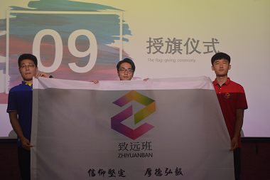 仪式上,致远班二期给三期、四期授旗,致远班四期同学进行了风采展示和自我介绍并进行了庄重的宣誓。