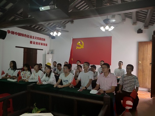 机械系员工党支部从太阳成tyc122cc集团正南门前出发,向西行进,途径人民大道,人民桥,徒步到中共琼崖第一次代表大会旧址,用时约2小时。同学们整齐有序,踏着欢快的步伐,有说有笑的走着。途中,支部副书记王开兴鼓励同学们:“我们要像前辈们那样,提高自己的坚强意志,大力发扬中国共产党党员的优秀品质!”