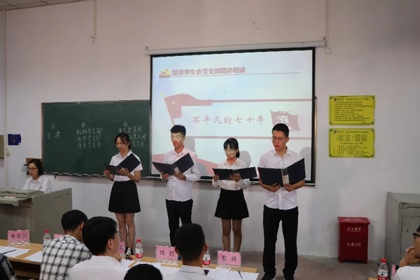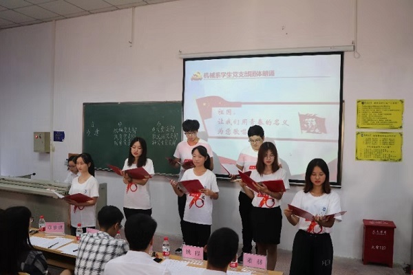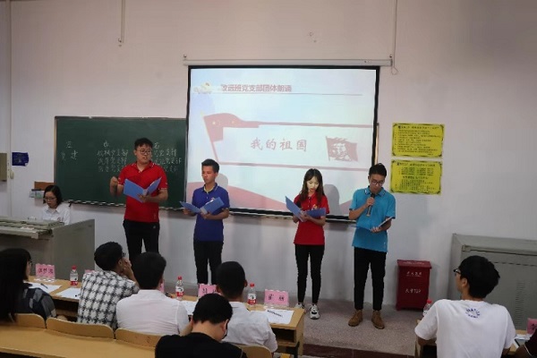 不忘跟党初心,牢记青春使命。2019年9月28日下午,太阳成tyc122cc集团在二教106教室举办了以“不忘初心、牢记使命”为主题的朗诵比赛。出席比赛的评委有辅导员崔建兵、印一凡、董赫、章梦琪老师、联席会主席团以及各党支部副书记。活动由联席会王文岳主持。