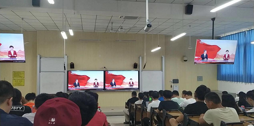 研究生党支部的同志们9点准时在第五教学楼112多媒体教室参与观看国庆70周年的阅兵视频直播,整个过程中,同志们目不转睛,时不时为祖国的强大而感叹。当各个方阵接受人民检阅时,大家的那份热情,那份对祖国的赞美化作雷鸣般的掌声,在教室里经久不衰。