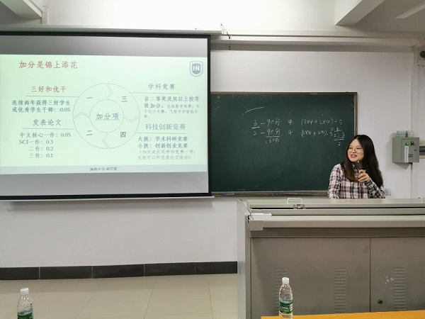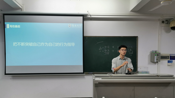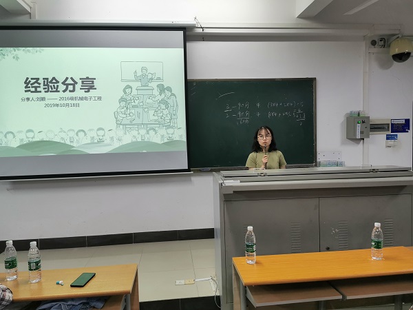张懿唐学长以“做出属于自己的选择、砥砺前行度过一个精彩充实的老员工涯”为主题,他从绩点、素拓分、发展分以及加分竞赛等情况做了具体的介绍,并告诫学弟学妹们奋斗的青春最美丽;赵艺雯学姐以“你的负担将变成礼物、你受的苦将照亮你的路”为主题,介绍了推免的要求,并以自己从高绩点到满绩点的学习经历激励同学们努力学习,同时建议同学们要找准目标、制定计划、努力、自律、不断前行;罗怡坤学长以“把不断突破自己作为自己的行为指导”主题,他从时间管理和大二如何选择专业两方面,以及结合自己参加科研的经历为同学们给出了建议;刘颖学姐结合自己的经历,就如何学好专业课和平衡员工工作作出了一系列的回答;王开兴学长以“你的能量超乎你想象”主题,用“鼓掌”的方式告诉了同学们你的能力超乎你想象,并就如何度过自己的老员工活做了分享,建议同学们多参加课外活动,丰富自己的业余生活。