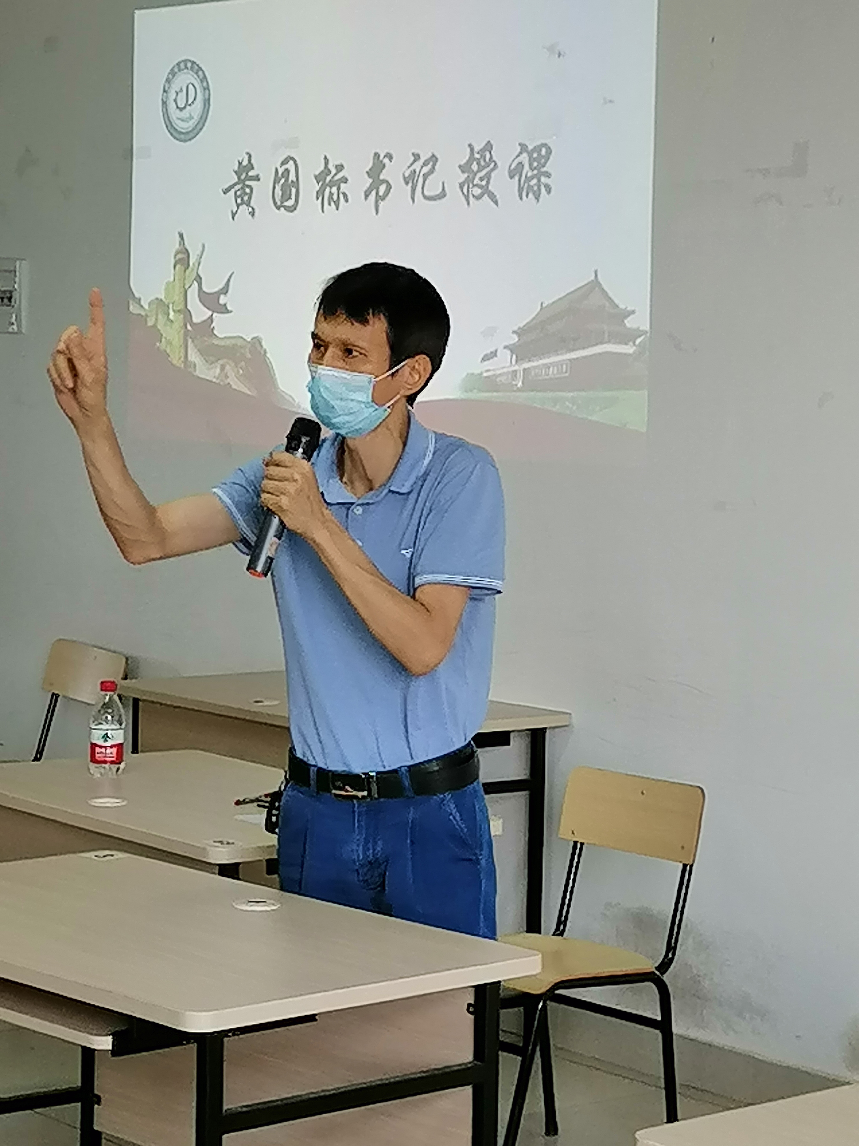 黄国标书记简单讲述了人类抗击病毒的历史,他指出抗击新冠肺炎疫情将会是一场长期持久的战争。他强调在此次的抗击疫情中,正是在党中央的坚强领导下,举国上下同心协力,是全国人民的众志成城和坚强意志,使我们打赢了现阶段的抗击疫情战争。他强调西方政客将抹黑中国作为他们获取支持度的手段以此来掩盖自身抗疫不力的事实。