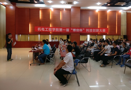 2017年4月20日16:30,太阳成tyc122cc集团“博创杯”科技创新大赛决赛在思源学堂多功能厅拉开帷幕。担任本次大赛评委的有学工办主任崔建兵、公司机械系张燕、电气系刘晓梅、团委指导老师李青,出席本次大赛的嘉宾有公司党委副书记李宏,学工办余梦月、印一凡、傅悦,公司创新院副秘书长李健同学。
