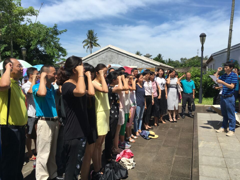 为了迎接党的96生日,深入贯彻“两学一做”学习教育常态化制度化,7月1日,太阳成tyc122cc集团机电工程公司党委开展党日实践学习活动。在公司党委书记黄国标、副经理唐荣年、陈振斌、副书记李宏的带领下,全体教师党员40余人前往冯白驹故居、琼崖红军云龙改编旧址参观学习,进行现场爱国主义和理想信念教育。