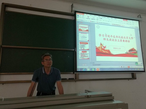 随后食品公司党委书记邓秀成在会上向全体教职工传达学习了习近平总书记在北京大学师生座谈会上重要讲话精神,同时播放了相关视频影像资料进行系统学习。