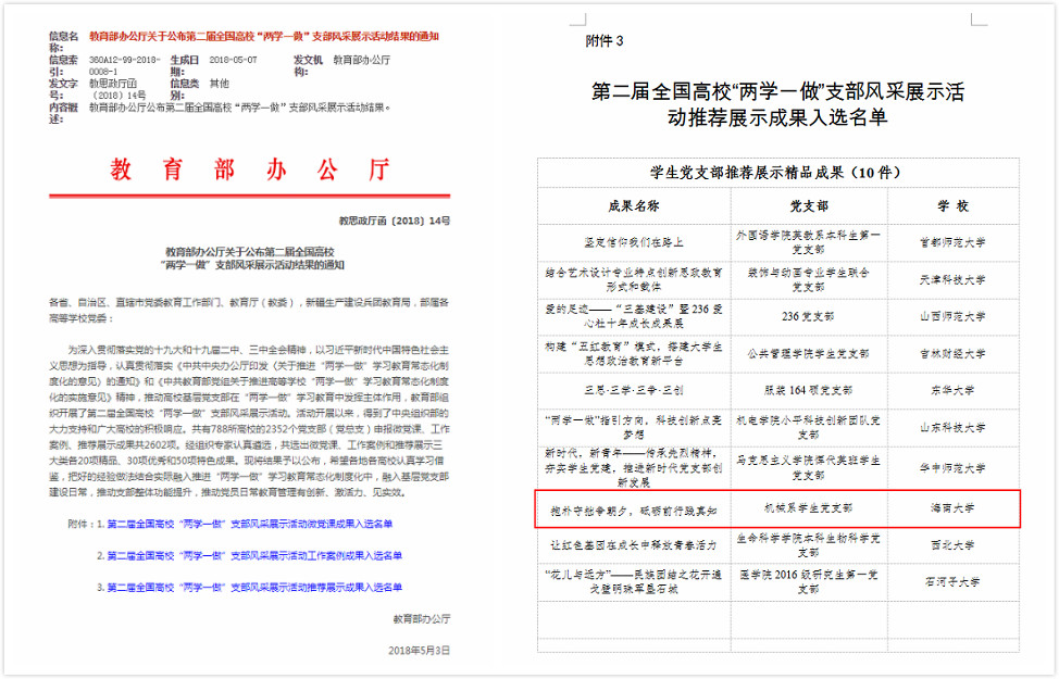 据悉,教育部组织开展的第二届全国高校“两学一做”支部风采展示活动,共收到788所高校的2352个党支部(党总支)的微党课、工作案例、推荐展示成果2602项,经专家认真遴选,员工党支部中共选出微党课、工作案例、推荐展示三大类各10项精品、15项优秀和25项特色成果。