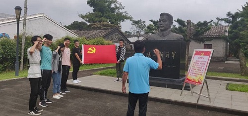 在参观过程中,冯白驹将军后人冯尔动先生声情并茂地为大家讲述将军作为琼崖纵队的领导人是如何带领乡民创建军队抗击日军,创造了“二十三年红旗不倒”的历史传奇。一个个鲜活精彩的历史故事如一粒粒种子深深扎根于每一位成员的心中。“孤悬海外,独立作战,冯白驹以忠贞不渝的理想信念,始终坚守逆境斗争的精神高地。不论环境多么艰苦,道路多么曲折,冯白驹从不动摇革命信念”,冯尔动先生说,“是忠诚的革命信念成就了冯白驹将军昂扬奋斗的一生”,真挚的革命情怀引起了支部全体成员的强烈共鸣。紧接着党员们通过观看珍贵照片、实物、雕塑以及历史资料,寻觅将军足迹,感受丰功伟绩。最后,在冯白驹将军铜像的见证下,全体成员重温入党誓词。