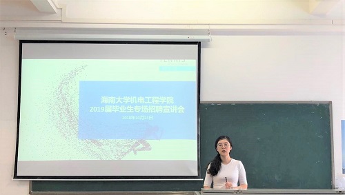 唯才是举,思闲若渴,一片真诚,相遇海大。2018年10月23日下午3:00,2019届毕业生第二场招聘宣讲会在4教114圆满举行。出席宣讲会的有海口链家海南分公司、中铁电气化铁路运营管理有限公司、昌江水务局、一嗨租车、学而思等公司人事负责人、公司团委负责人袁周米琪老师,2019届100余名毕业生以及院员工职业发展中心的工作人员。会议由院员工职业发展中心薛奕昕主持。