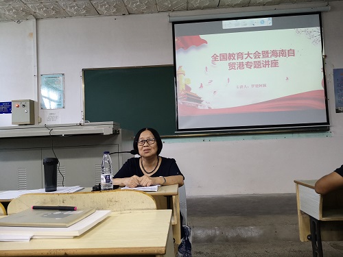 主讲人罗曼阿姨首先带我们回顾了全国教育大会。罗曼阿姨强调,要充分认识全国教育大会的重大意义,深入学习领会习近平总书记关于教育的重要论述,深入理解和把握坚持党对教育事业的全面领导,坚持把立德树人作为根本任务,坚持优先发展教育事业,坚持社会主义办学方向,坚持扎根中国大地办教育,坚持以人民为中心发展教育,坚持深化教育改革创新,坚持把服务中华民族伟大复兴作为教育的重要使命,坚持把教师队伍建设作为基础工作。她结合自身经历,分享了自己学习感悟,指出教育是民族振兴,社会进步的重要基石,号召老员工要自觉接受教育,争做无产阶级的接班人,切忌做“精致的利己主义者”、“高学历的野蛮人”。随后,罗曼阿姨又为我们普及了自贸港方面的知识及相关政策,使大家了解到国家对于海南逐步探索、稳步推进中国特色自由贸易港建设的支持。呼吁我们在未来学成归来后,为海南建设自贸港贡献出自己的一份力量。