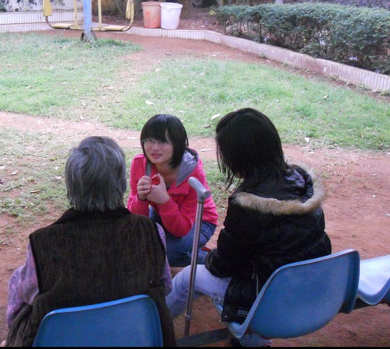 下午2:30,振东老年公寓于主任亲切接见了广大志愿者,于主任首先对大家的到来表示欢迎,然后耐心细致地交代了活动注意细节。接着,志愿者们立刻融入了老人的生活中,有的为老人分发自愿购买的橘子、香蕉、麦片、核桃粉等礼物,有的去找老人聊天,有的去打扫卫生,甚至有人还当起了“园艺工人”,连公寓主任都夸他修枝剪叶很“专业”,还有的收窗帘、挂窗帘一条龙……;活动中男生们多干体力活,女生们多陪老人,有些海南籍同学还当起了翻译。活动中,老人们露出了久违的笑容。