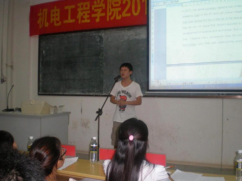 为了迎接2011年“外研社杯”全国英语演讲比赛,公司在9月8日(星期四)在3302课室举行院内选拔。出席此次英语演讲比赛的嘉宾有崔建兵、姚广龙老师,担当评委的有应用科技公司英语老师王菲、金晓霞,以及全国老员工英语竞赛(NECCS)获奖者马鑫。此次演讲的题目是:A Word That Has Changed the World。比赛选手由各班级推荐,共15名参赛选手,到场观众有近160名。