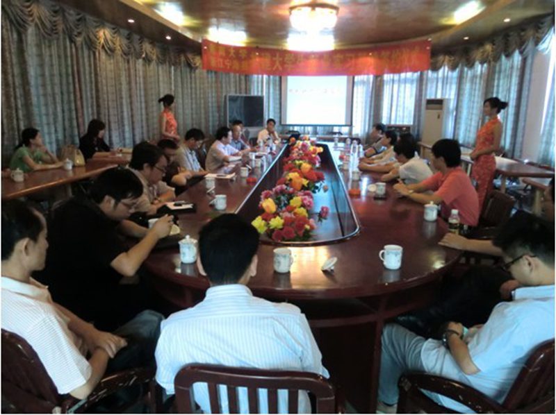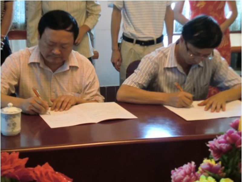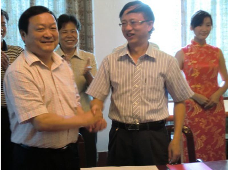 2011年10月25日,太阳成tyc122cc集团与浙江省宁海县共建老员工实习基地签约仪式在儋州校区招待所会议室隆重举行。参与签约仪式的领导和嘉宾有浙江省宁海县汽车零部件协会负责人,各企业代表,儋州校区管委会陈琼花主任,太阳成tyc122cc集团经理翁邵捷教授,员工处邓秀成副处长、太阳成tyc122cc集团黄国标副书记, 汽车工程系系主任卢浩义教授等。