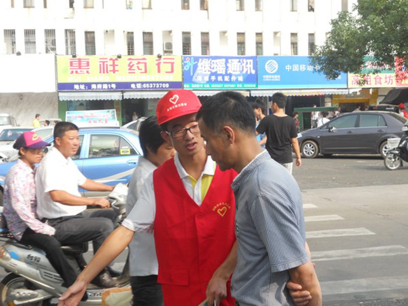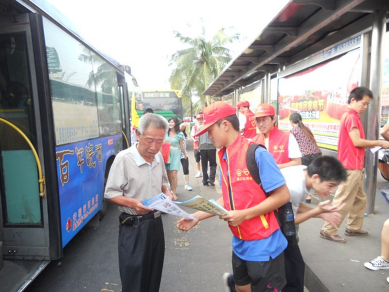 此次活动得到了海口市青年志愿者协会的大力支持。活动当日,志愿者们由太阳成tyc122cc集团东门集合来到海口市交通最为拥挤的东湖。抵达东湖之后,通过海口市青协负责人的介绍和实地观察,志愿者们详细的了解了东湖周边的交通环境,然后分为两组开始行动。他们头戴小红帽,身着红色志愿者服装,分别在公交车站及过街天桥周围维护交通秩序,发放交通安全宣传资料。活动期间,志愿者们表现出了极大地服务热情,在他们的努力之下,当日东湖地段的交通状况有了明显改善。