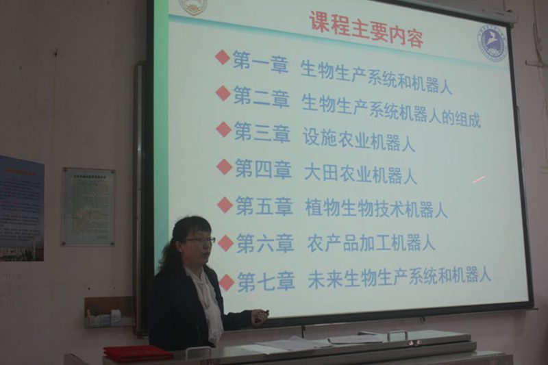 在为期3天的授课中,徐教授全面系统地讲授了以《生物生产系统机器人》为主题的课程,主要对象是2012级机械电子工程、机械设计制造及其自动化和农业机械化及其自动化本科专业的员工,部分教师和研究生也听取了讲座。徐教授首先用通俗易懂的语言阐述机器人的定义和分类,继而引出生物生产机器人的主题;然后,通过对黄瓜、茄子和草莓等蔬菜水果生产机器人的实例讲解,详细地向同学们说明生物生产机器人的基本组成和技术难点;最后,徐教授指出农业机械的发展趋势是农业机械生产的自动化和智能化,建议海南应该研究开发热带作物的智能化机器采收技术。授课过程中,徐丽明教授用其敏锐的眼光、广博的视角、深度的思考启发了在座的每一位师生,同学们认真听讲并积极参与课堂互动,课堂气氛热烈,在场师生也纷纷表示在知识的盛宴中受益良多。