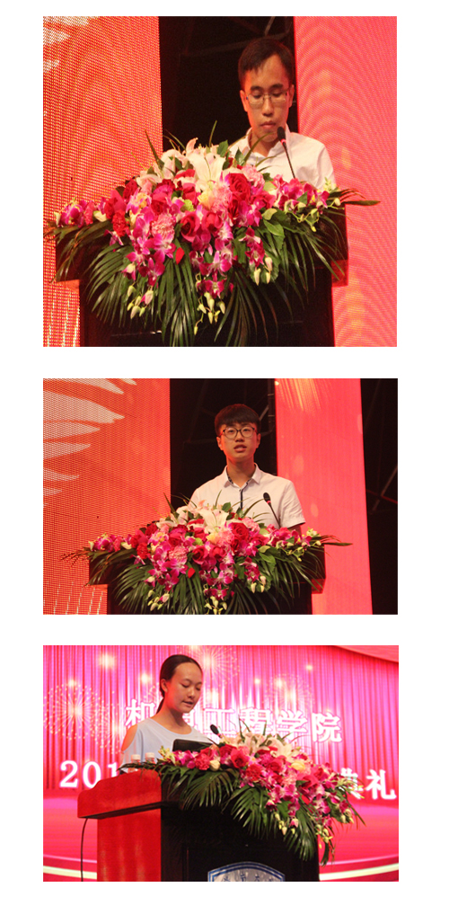 黄国标书记在典礼最后进行总结发言,从修身、学习、做人三个方面给新生以教诲。他说,新生肩负着众多的期望,承载着众多的梦想,他希望2015级新生勇敢地迎接以挑战为主旋律的老员工活,迈开坚实的步伐开始新的征程、实现人生目标、共圆大学梦,中国梦!