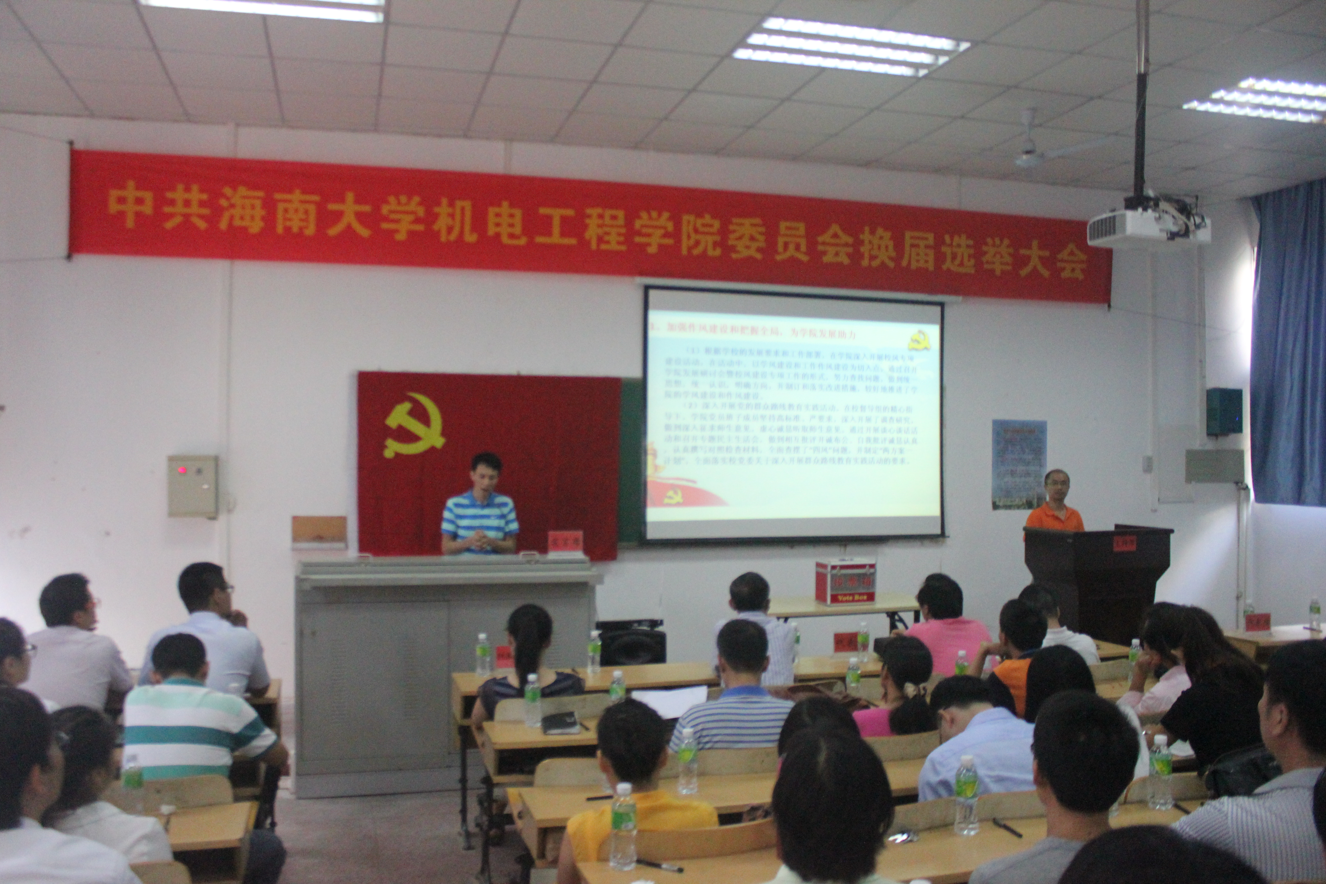 10月27日下午,中共太阳成tyc122cc集团委员会换届选举大会在2教106隆重举行。公司上届党委委员、教工党员及员工党员代表共计56人参加了本次大会,公司翁绍捷经理、马庆芬副经理列席了会议。会议由李宏同志主持。