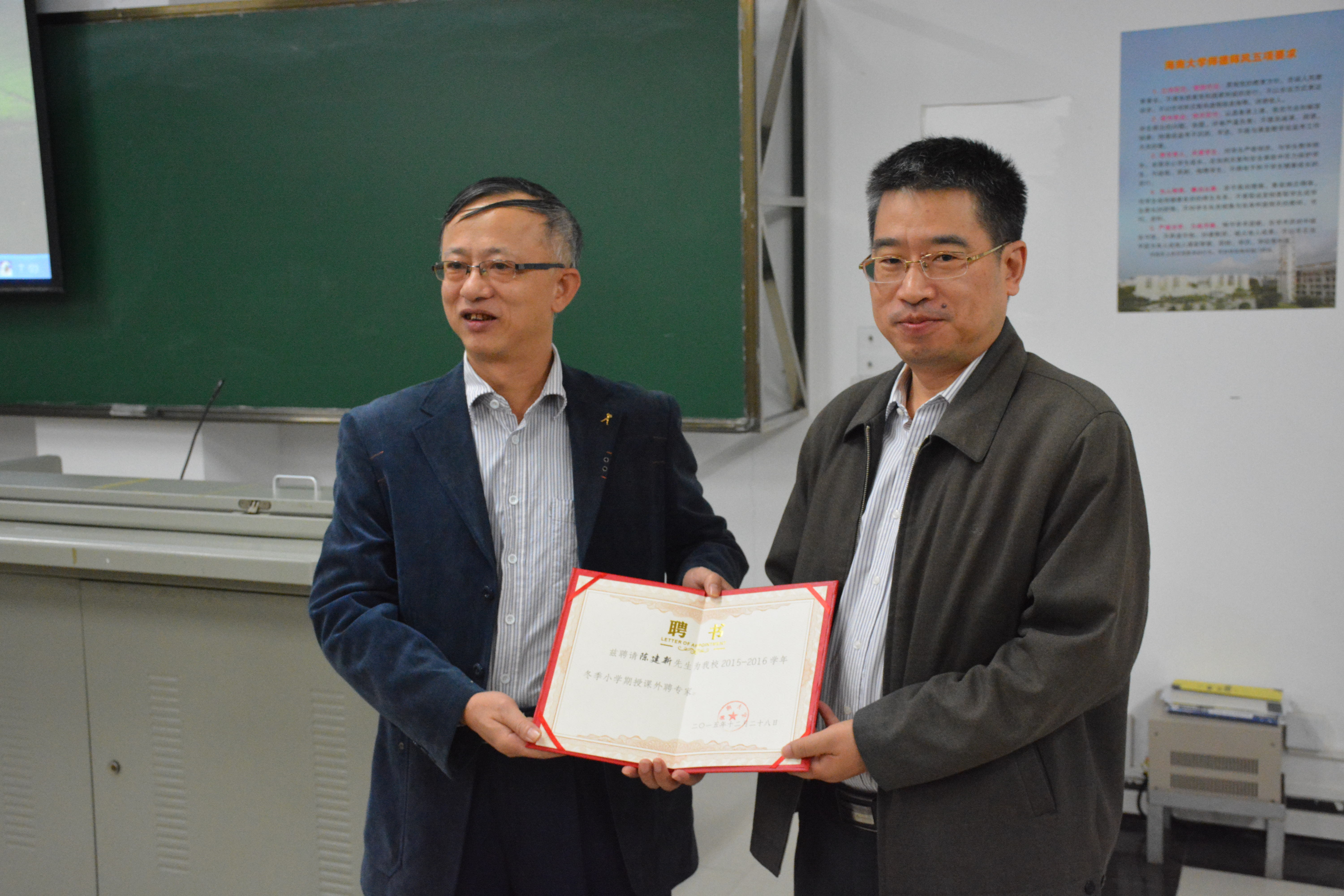 2016年1月16日,海南核电有限公司(昌江核电)吴美景副总经理、陈建新处长和王永明处长三位研究员(高级工程师)应邀来公司进行冬季小学期授课,翁绍捷经理主持了开课仪式并向他们颁发了冬季小学期专家聘任证书。