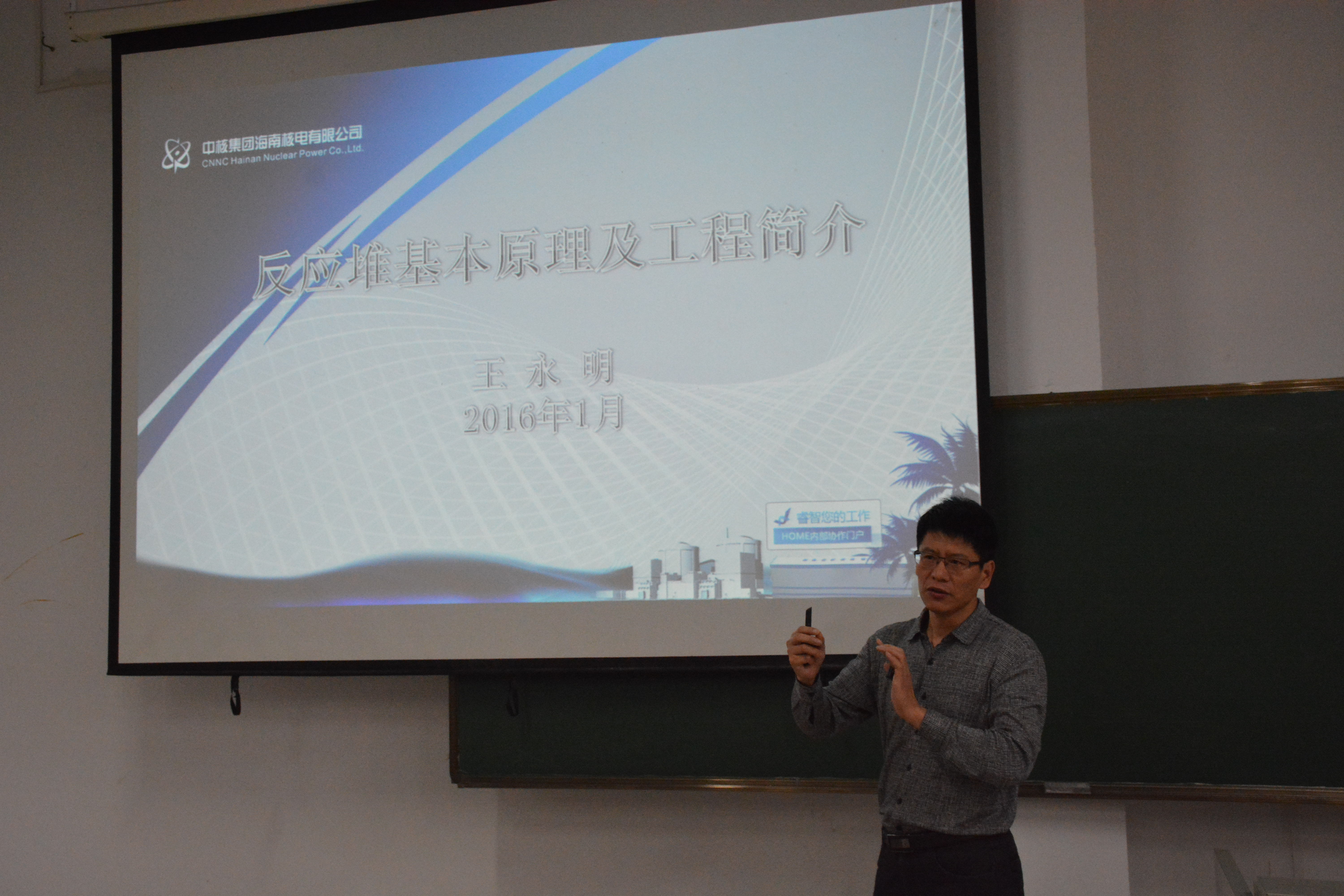 讲座围绕“核电原理与安全问题”。其中,吴美景副总以“核电发展和安全”为题,为2013级电气工程及其自动化和自动化本科专业的员工讲授了核电发展和安全方面的知识,主要包括:核能发电及中国核电、核电的安全保障机制、历史上的核灾难和中国核电未来的发展趋势及预测等方面。陈建新处长则结合海南实际,讲解了海南的核电发展状况,以及海南昌江核电的选址、建设和商运发电等各方面知识。王永明处长则从专业的角度对核能从矿石到铀棒的全流程生产过程进行详细介绍,并对反应堆的热工物理特性进行全面解读。讲座使同学们从核电原理、建设、运行和安全管理等方面对核电技术有了更深入地认识,激励了他们对国家核事业的支持,消除了对核电安全的顾虑。讲座期间,同学们精神饱满,不时响起热烈的钟声。