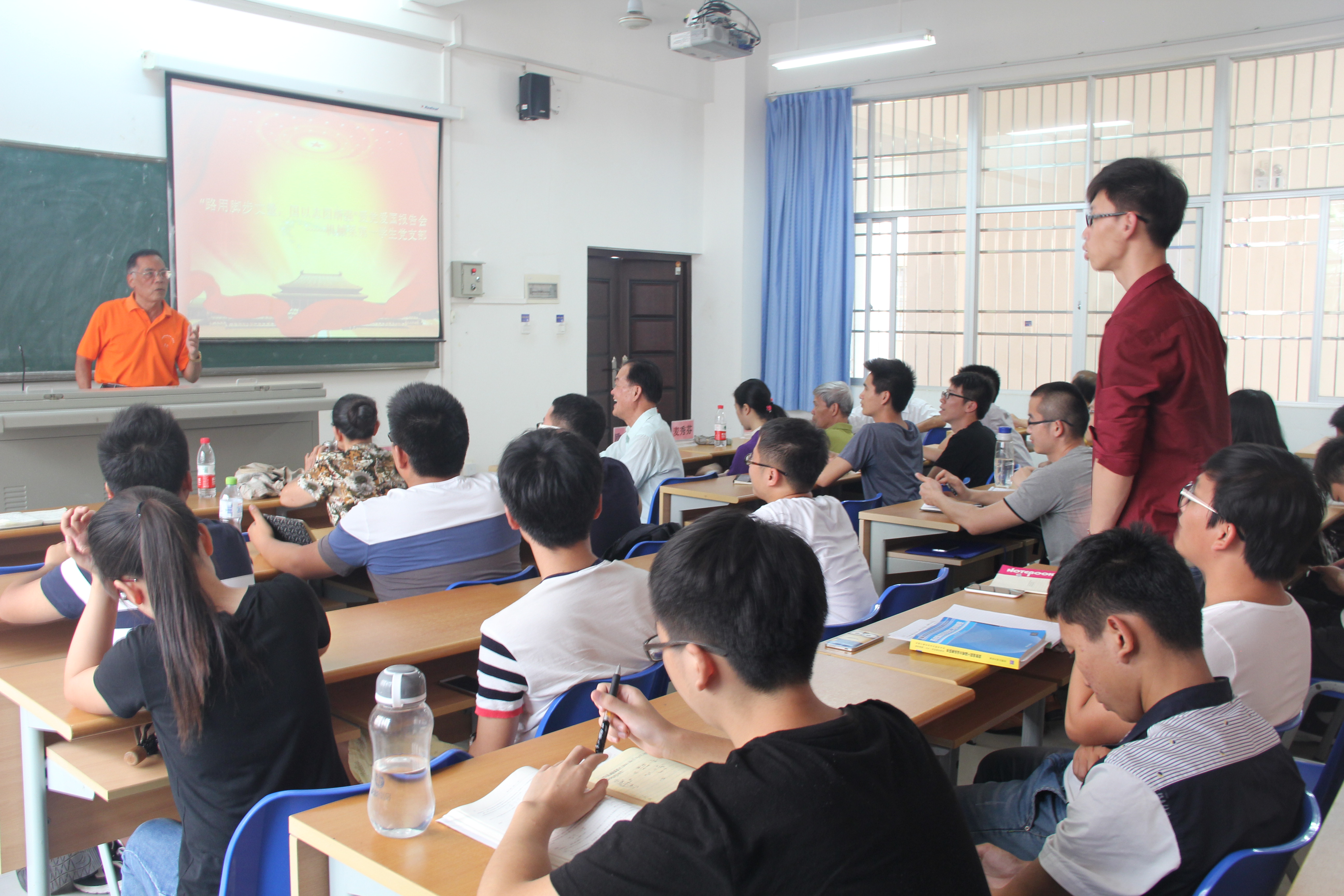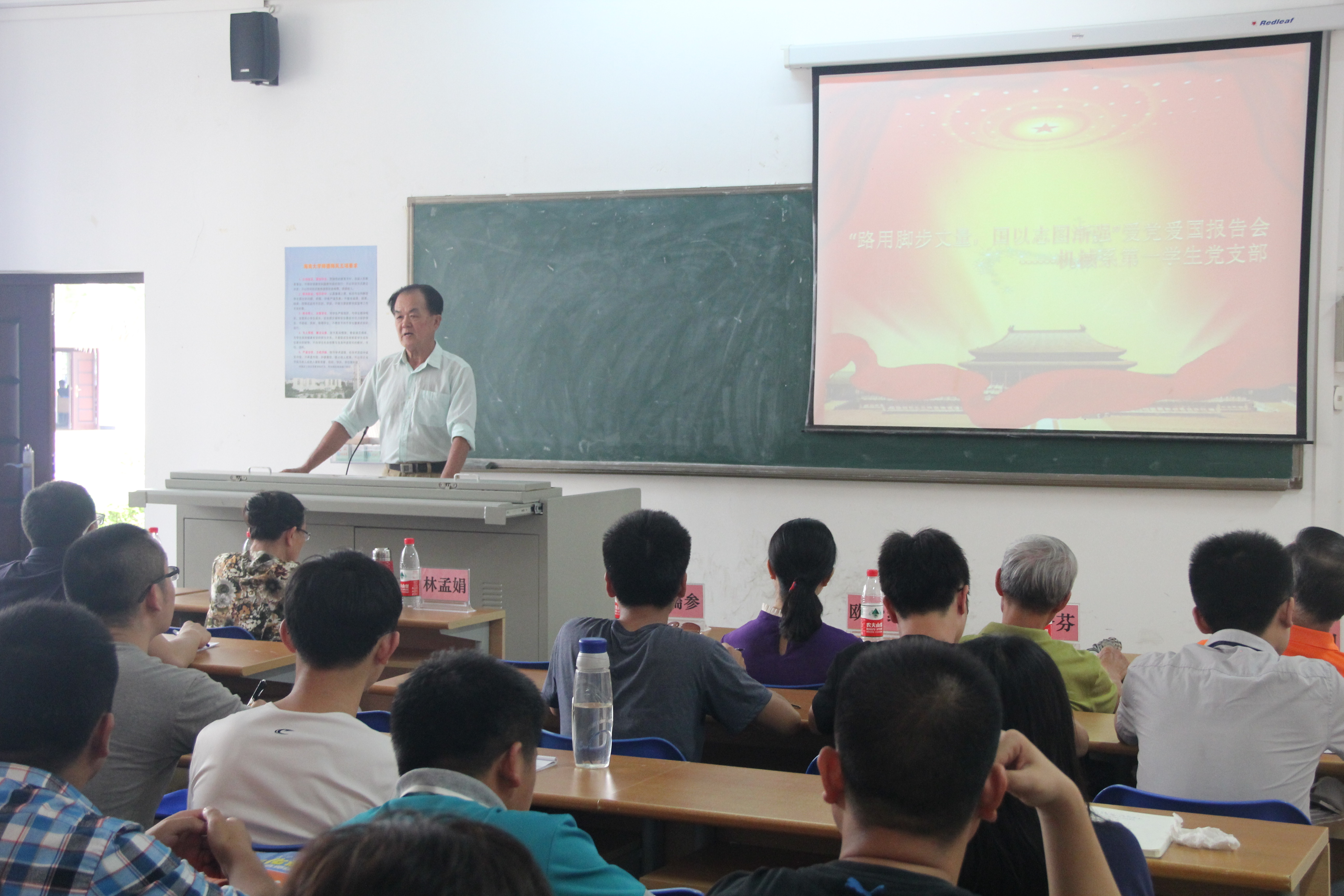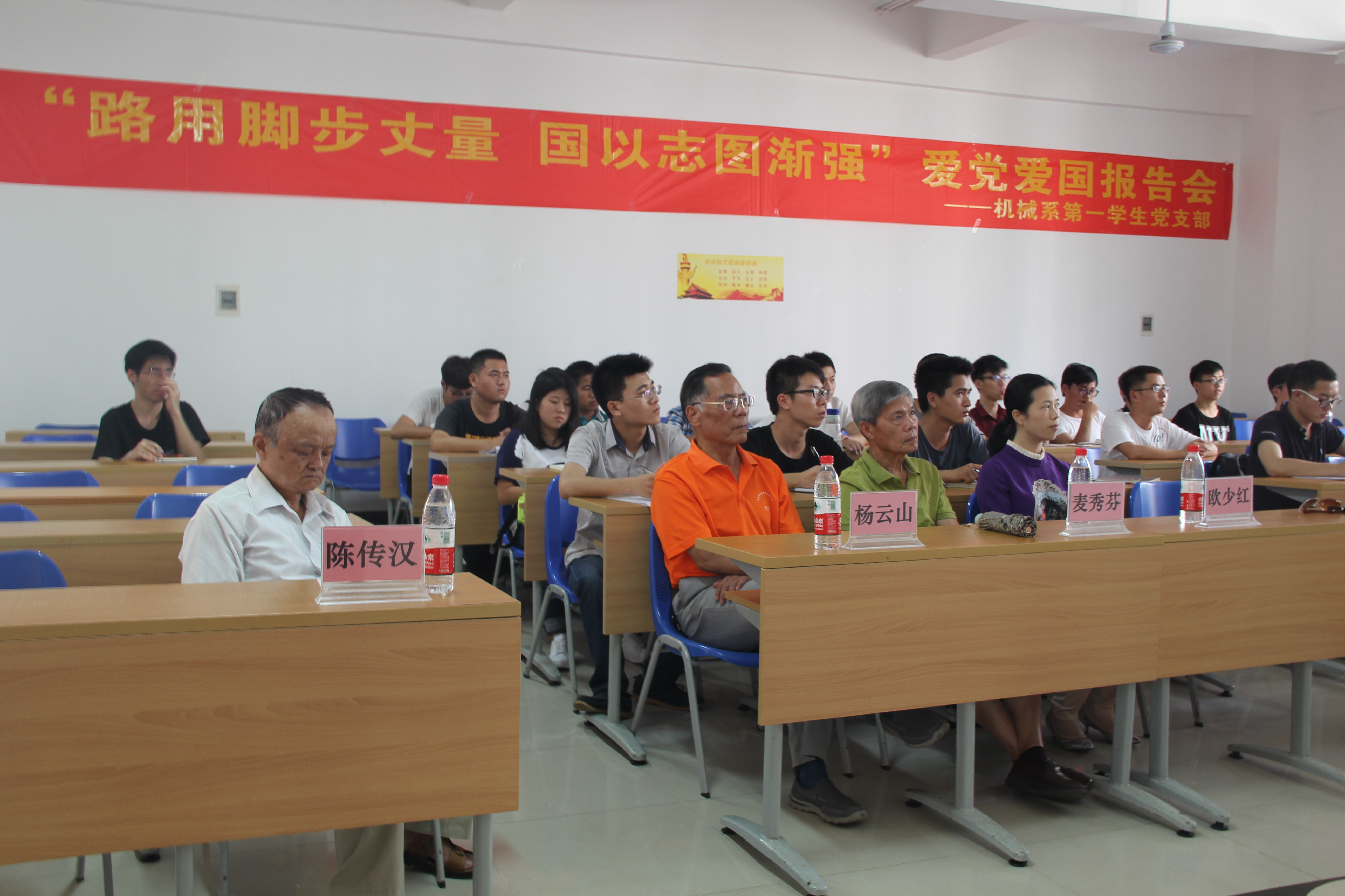 为了积极响应党中央“学党章党规、学系列讲话,做合格党员”的“两学一做”学习教育号召,加强员工党员的党性修养建设。太阳成tyc122cc集团机械系第一员工党支部于四月十五日下午在4-109隆重举行主题为“路用脚步丈量,国以志图渐强”的爱党爱国报告会,出席报告会的有太阳成tyc122cc集团关工委、党史国史宣讲团成员程儒参、杨云山、陈传汉、麦秀芬、林孟娟老师,机电工程公司党委李宏副书记,信息科学与技术公司党委会秘书欧少红,机械系第一员工党支部书记崔建兵,参支部党员、入党积极分子约40人参加本次活动。报告会由宣传委员金杯主持。
