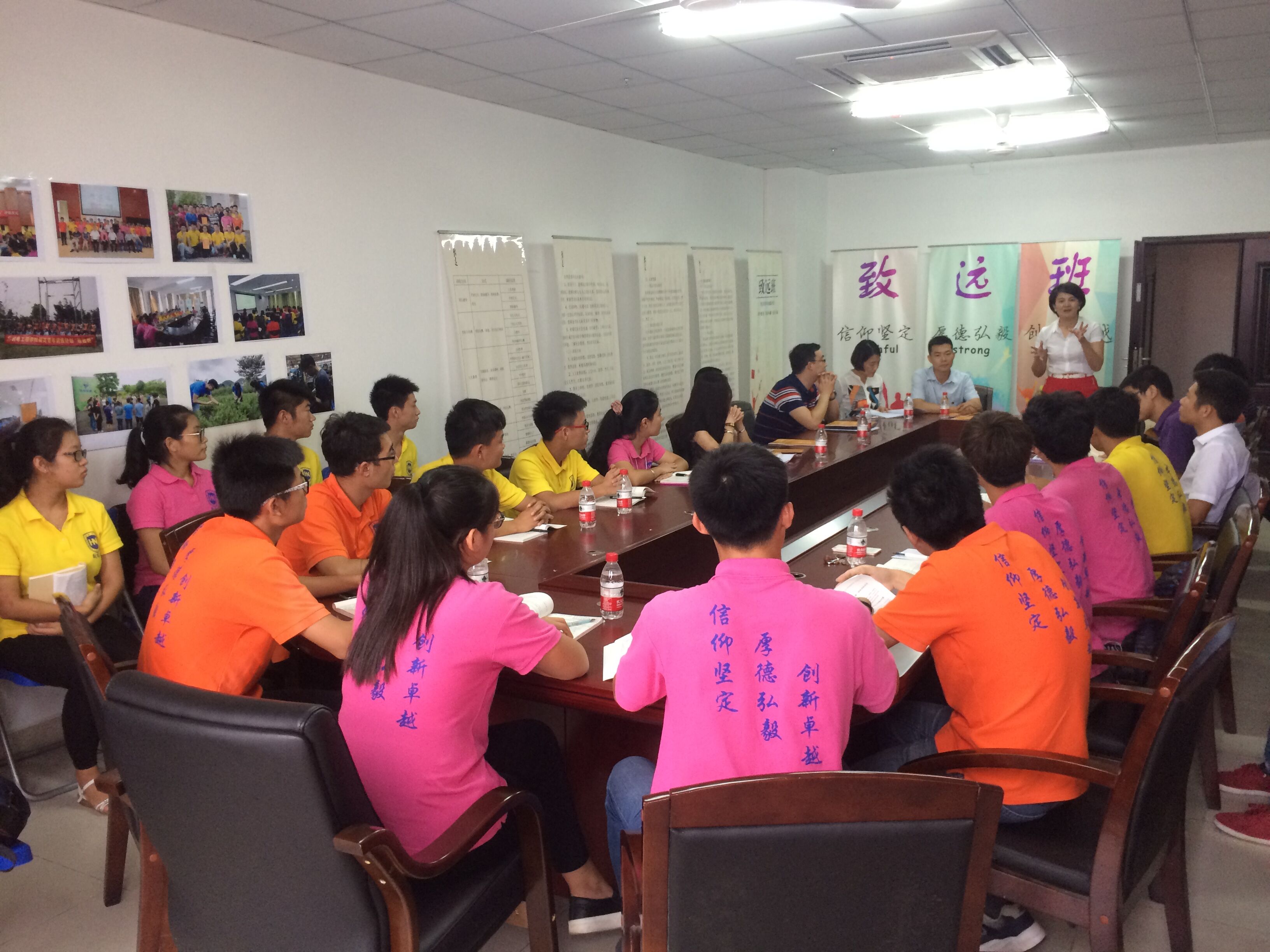 9月21日上午,由共青团海南省委党组成员、省青年联合会副主席罗桦,省志愿者指导中心主任周卉,团省委公司部副部长蒋振威、部分海南省高校团委负责人组成的高校共青团工作调研组一行到研发大楼417参加致远班团支部团日活动。同行的还有公司党委书记黄国标、校团委副书记黄小欧、陈广锐、校团委组织科王寅以及致远班班主任李青。