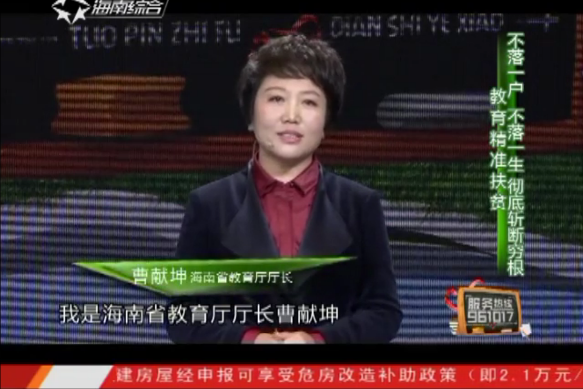 本期节目中,曹献坤厅长讲解了精准扶贫的相关内容。她指出教育精准扶贫就是通过精准帮扶、精准资助,让每一个建档立卡贫困家庭的孩子都能接受公平有质量的教育,从而学知识、长本领、促就业,从根子上斩断贫困链,彻底改变家庭命运。在提问环节李青和陈伟老师作为帮扶干部和代表进行了提问。