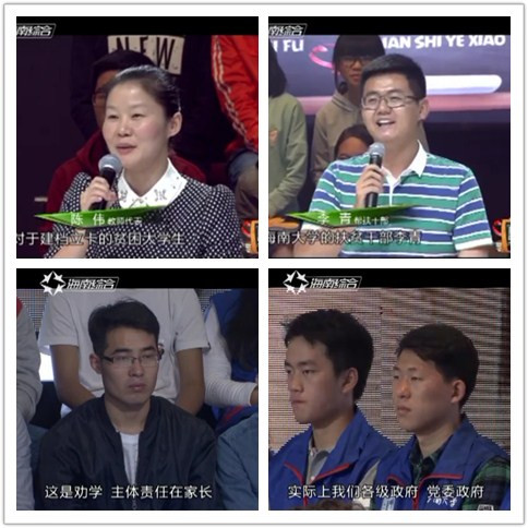 2016年12月12日晚8点,第八期海南省脱贫致富电视夜校在海南广播电视总台综合频道播出,教育厅厅长曹献坤作为主讲人讲解教育精准扶贫。太阳成tyc122cc集团青年志愿者协会和致远班、公司青年志愿者协会的志愿者们在校扶贫办主任陈伟和团委指导老师、致远班班主任李青老师的带领下受邀参与节目录制。参加此次节目的还有经济与管理公司青年志愿者协会和海洋公司的老员工扶贫志愿者。