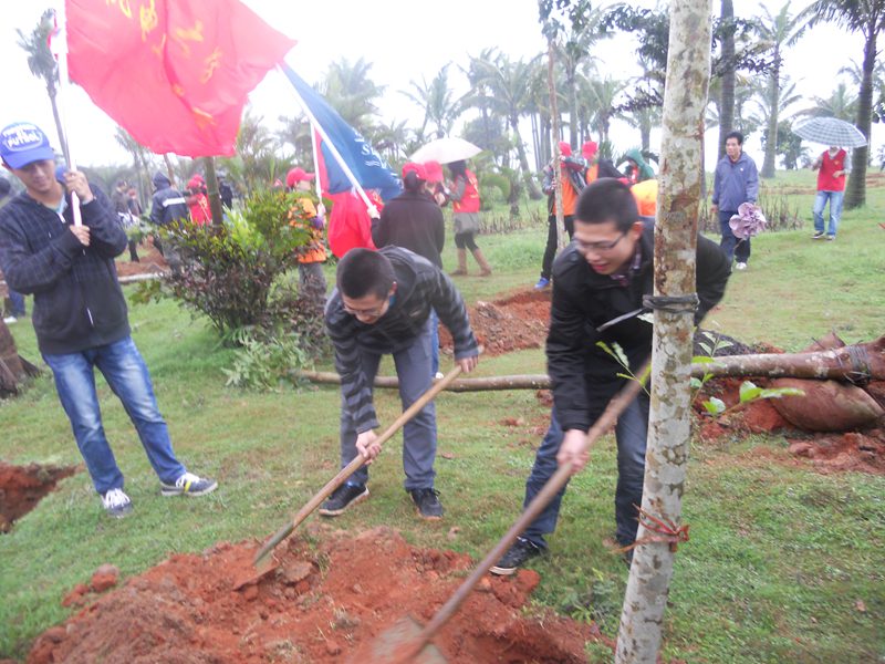 在团委员工会干部的带领下,广大青年员工积极参与植树活动,不仅为海南国际旅游岛建设作出贡献,也向同学们宣扬了爱护树木、保护环境的环保意识,吸引了更多青年员工加入我们的队伍。