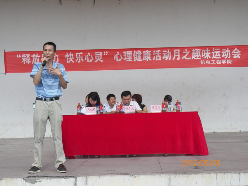 为了焕发同学们的运动激情,塑造一颗健康的心灵,构建一个和谐的校园。太阳成tyc122cc集团在这个阳光灿烂的五月迎来了心理嘉年华趣味运动会暨心理健康活动月开幕式。出席本次心理嘉年华趣味运动会的嘉宾有:员工处韩力光副处长,员工处心理健康教育指导中心吴九君博士,公司党委黄国标副书记,学工办主任陈秀妍老师,何映敏、崔建兵、姚广龙老师以及2010级和2011级全体员工。