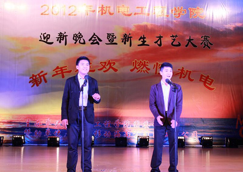晚会在别具一格的视频宣传中拉开帷幕,开场曲《天空之城》和《雨蝶》将气氛引入了高潮,观众的声声呐喊、阵阵掌声让本来拥挤的思源学堂更加激情四射;搞笑舞蹈《走你机电》、吉他弹唱《梦想》、粤语歌曲《红日》、架子鼓独奏《此岸》、相声《疯狂在线》、笛子伴舞《梁祝》等都为大家送来温馨与欢乐;大合唱《明天会更好》让我们看到了2012级新生的团结与活力,以及对未来美好的期待;晚会在歌伴舞《阿飞的小蝴蝶》中完美落幕。小品、歌舞、相声、互动游戏、微博互动以及抽奖等丰富多彩的节目,给现场个观众带来了一场全新的视觉盛宴。