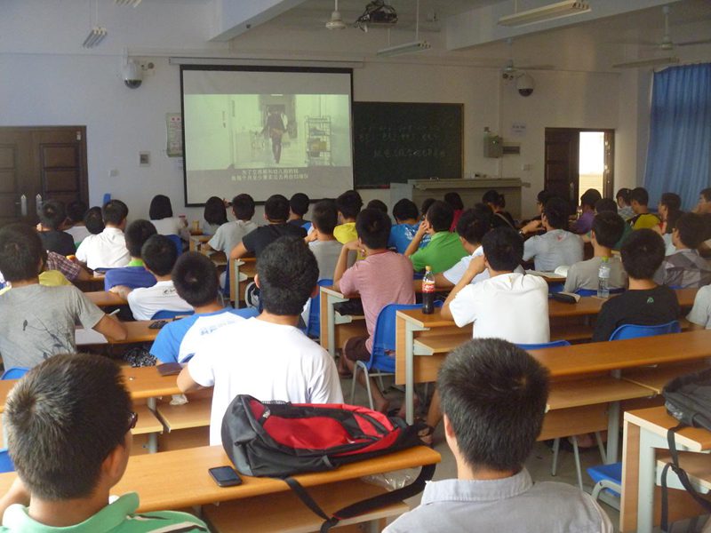 早上8:50,同学们都已经赶到教室,并热议着即将要播放的电影,期待电影。心理工作部在9:00点准时播放提前选好的两部影片《当幸福来敲门》和《面对巨人》。当影片播放的时候,每个同学都聚精会神专心观看,还时不时交流着电影的内容和感想,谈论着对电影的看法。影片在11:00结束,同学们还意犹未尽,期待今后能够推荐更多心理励志影片,跟着电影一起成长。
