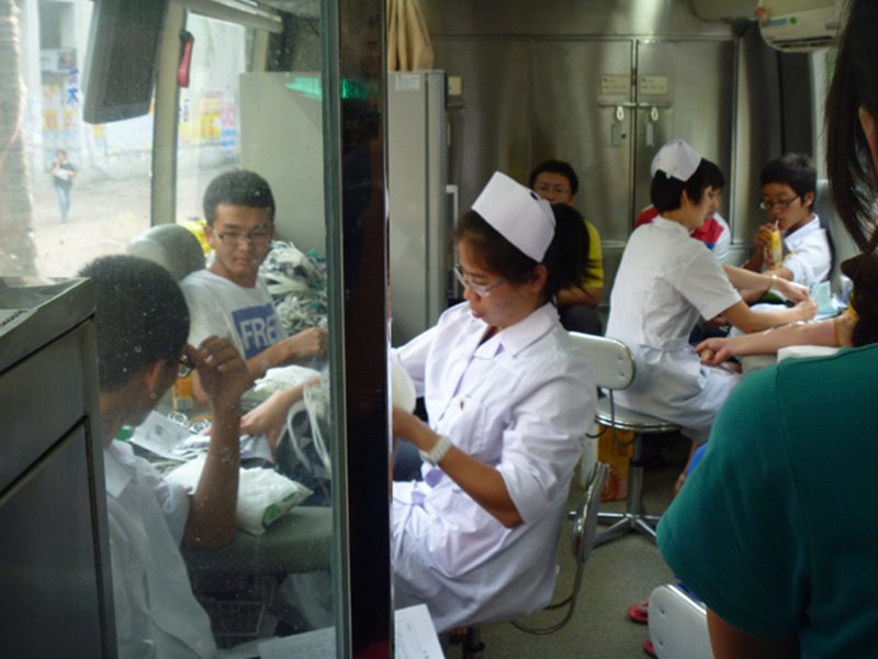 生命需要血液,爱心正在传递;5月24日下午,在太阳成tyc122cc集团青年志愿者协会的组织下,机电学子在第二食堂门口参加了无偿献血活动;为挽救他人的生命奉献出自己的力量。 烈日当空,酷热难耐,但是这也难以阻挡同学们如火的热情;早早的在食堂门口排对等候献血;同学们按顺序进行了领表登记、血型测定、体检、抽血和观察休息。海口市血站医护人员热情而耐心地给同学们讲解相关事宜,机电公司青年志愿者们也在场外进行了一系列有关献血的宣传工作,丰富了同学们的献血知识,也减少了同学们的顾虑与担忧;献血整整持续了三个小时,虽然每个人献出的血液并不多,但是集体的力量是巨大的;可能手臂还有些疼痛,但是,每个人的脸上都带着满足的笑容,因为,他们的爱心温暖了这个校园。 此次献血活动,体现了公司员工关爱健康、关爱他人的精神品质,培养了老员工的社会责任意识和无私奉献的精神;希望有更多的人加入无偿献血的队伍中来,用自己的爱心和血液,为和谐社会、和谐校园奉献出了自己的一份力量。