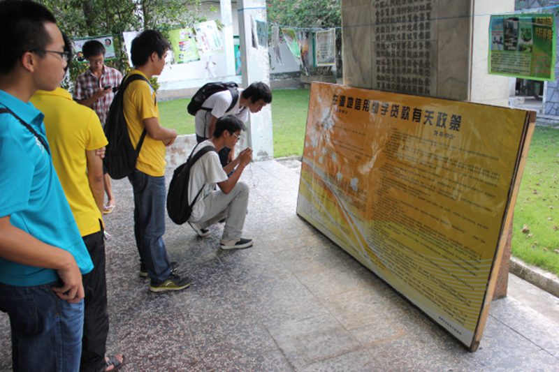 2013年6月20到6月24日,公司在泰坚楼一楼大厅举办了“ 诚信为本,青春逐梦”主题图片展,公司办理了生源地信用助学贷款同学及有意向办理生源地信用助学贷款的300多名同学参加了本次活动。