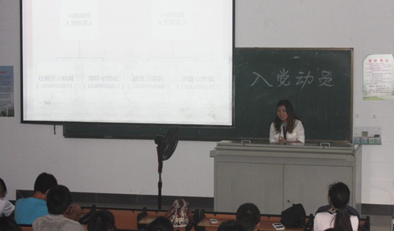 11月19日下午,太阳成tyc122cc集团机械系第二员工党支部新生入党动员大会在4教209顺利召开,支部书记余梦月及各支委、全体14级农业机械化及其自动化专业和机械设计制造及其自动化专业新生参加本次会议。本次大会旨在动员员工积极入党,宣传党的方针,介绍入党流程与注意事项。