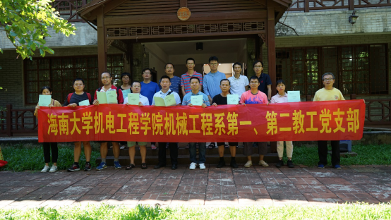 2020年9月12日下午,中共机电工程公司党委主题党日活动在火山泉农业培训基地举行。公司党委书记黄国标、经理唐荣年、副经理金志扬和汽车工程系第一教工党支部、汽车工程系第二教工党支部、机械工程系第一教工党支部、机械工程系第二教工党支部和电气工程系教工党支部的党员参加了活动。学习及讨论的主要内容包括:习近平总书记系列重要讲话精神、海南省委书记刘赐贵在海南自贸港创一流营商环境动员大会上的讲话精神和课程思政等。