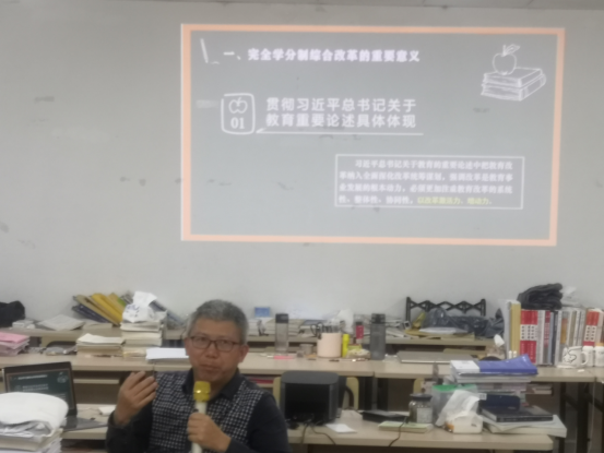 座谈交流会结束后,邱锡光处长为我们公司的全体老师进行了公司有关完全学分制改革专题解读,邱锡光处长讲述了完全学分制改革的重要意义,完全学分制改革的基本内容,重点解读了完全学分制改革的技术路线,完全学分制度下,赋予了老师们更多的自主权,鼓励老师们要开展教学探讨,改进教学技能,不断提高教学水平。